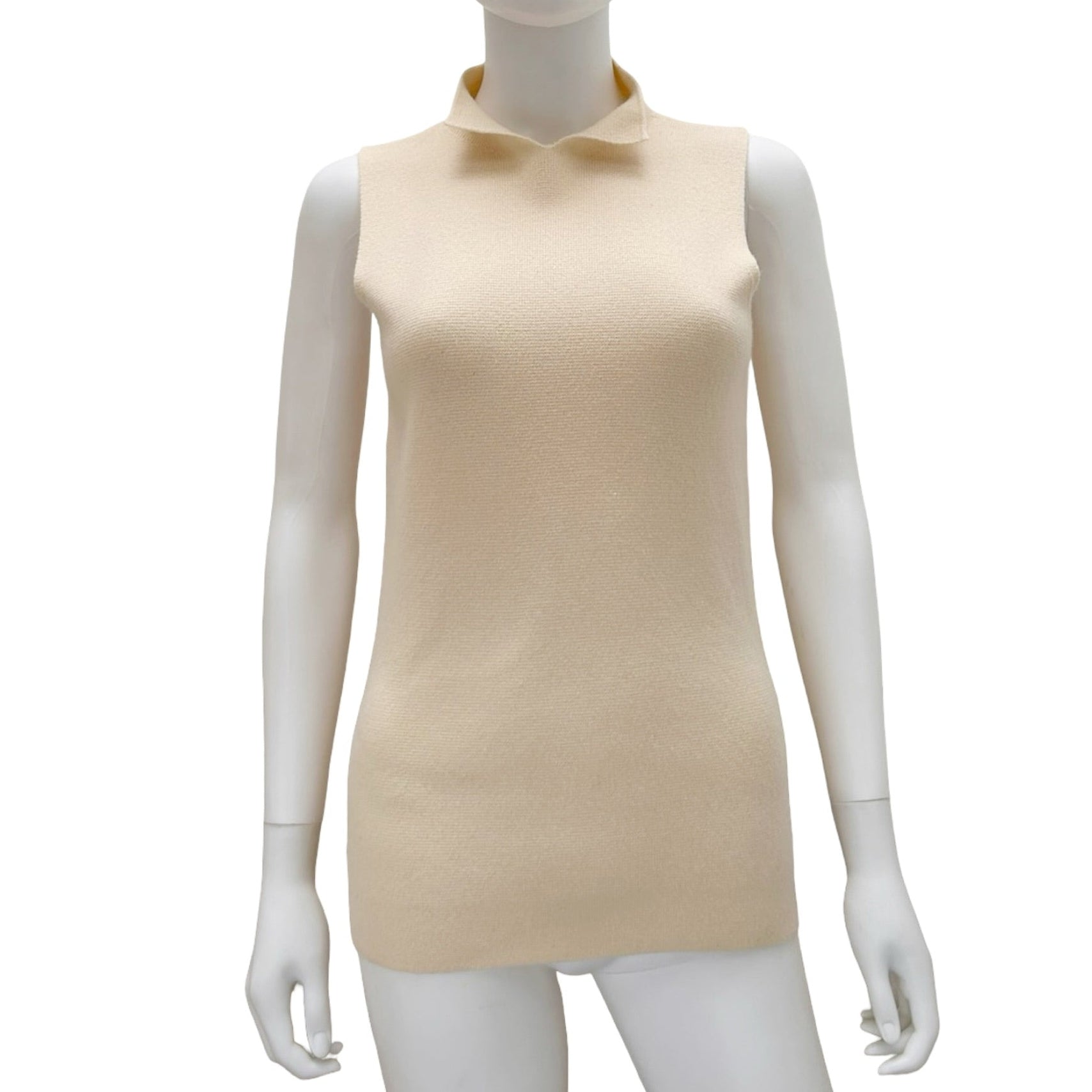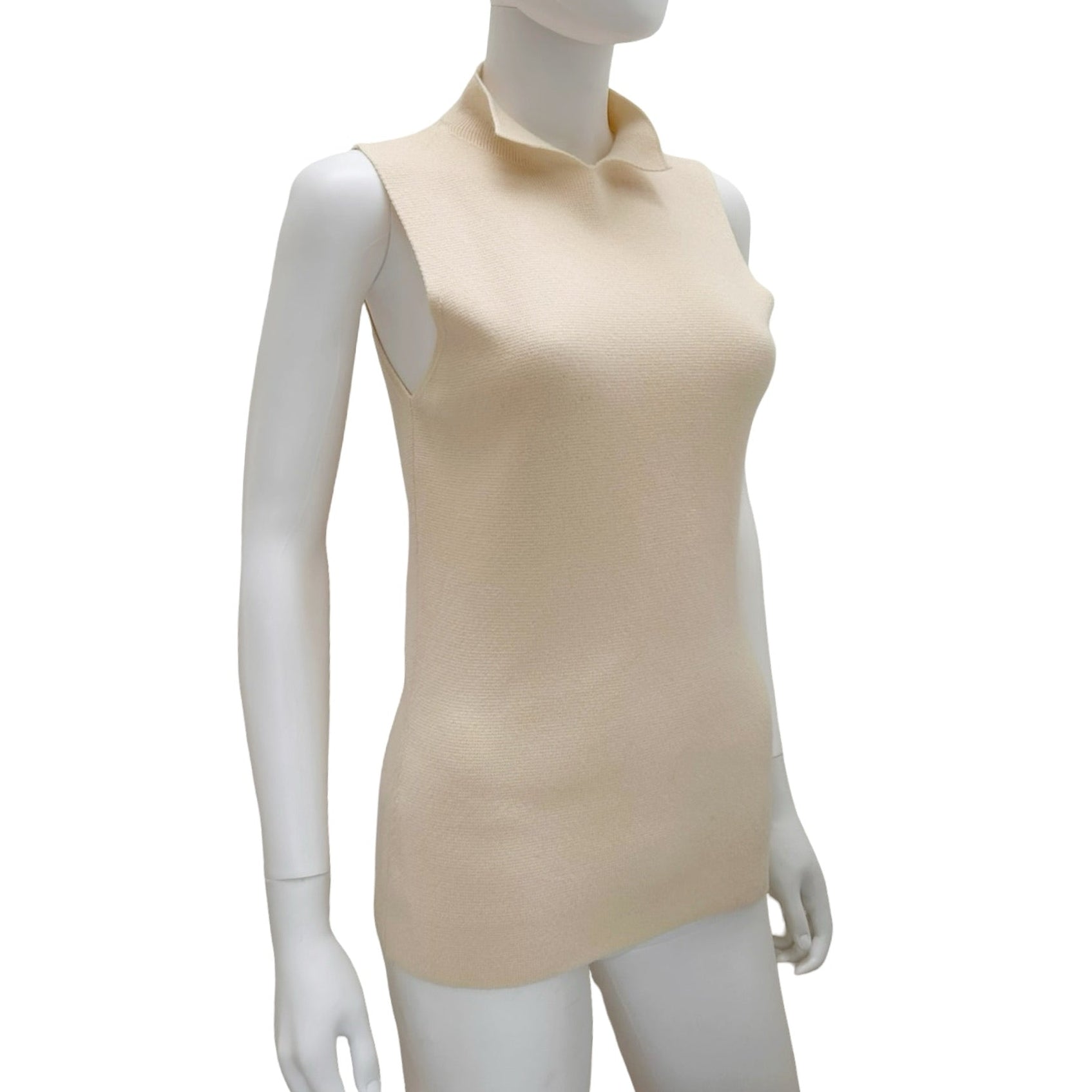 Description - Early 2000's Gucci knit cashmere sleeveless top with notched mock neck.