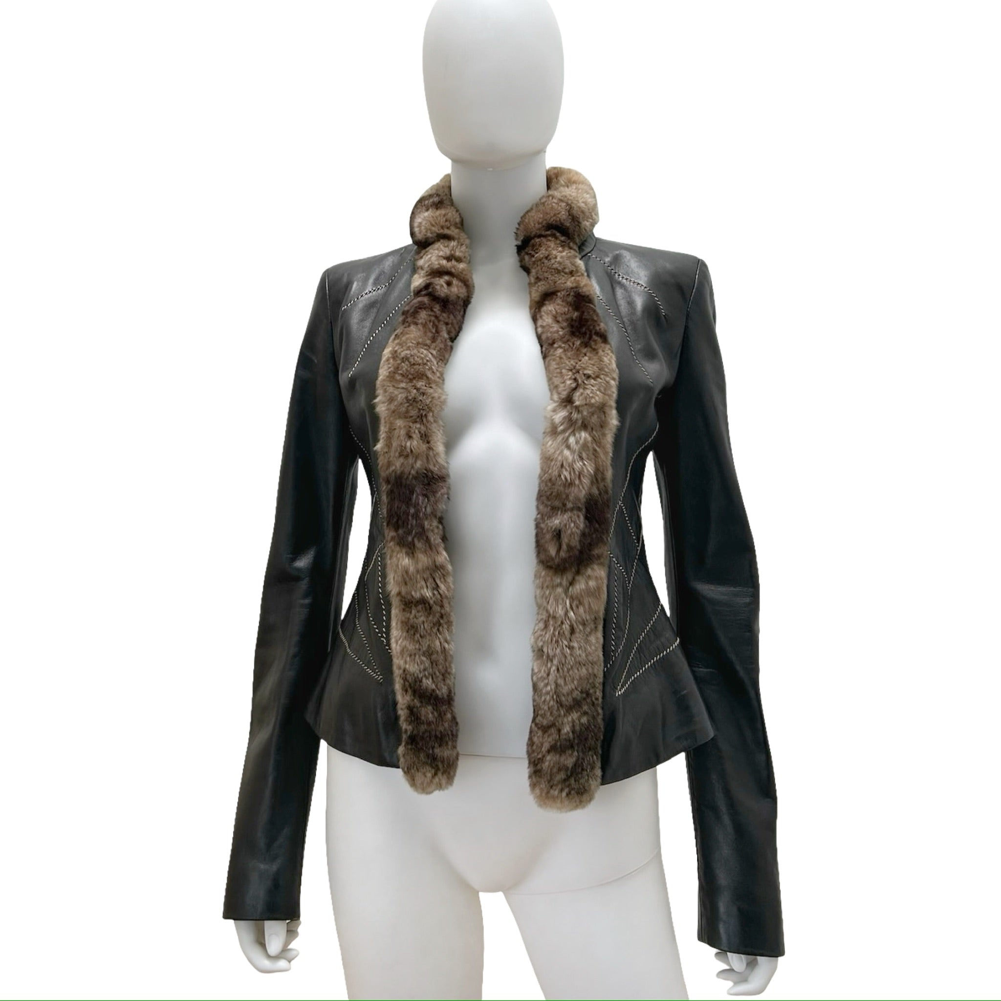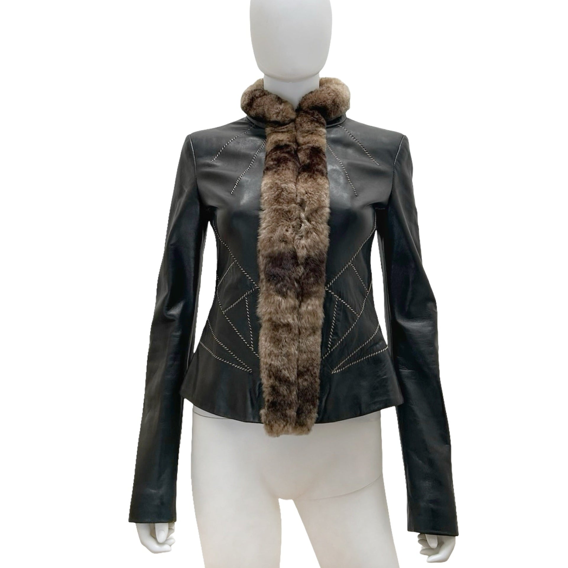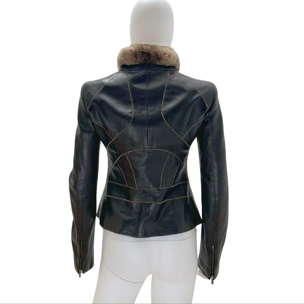 Armani Collezioni - 2002 Fur Trim Leather Jacket