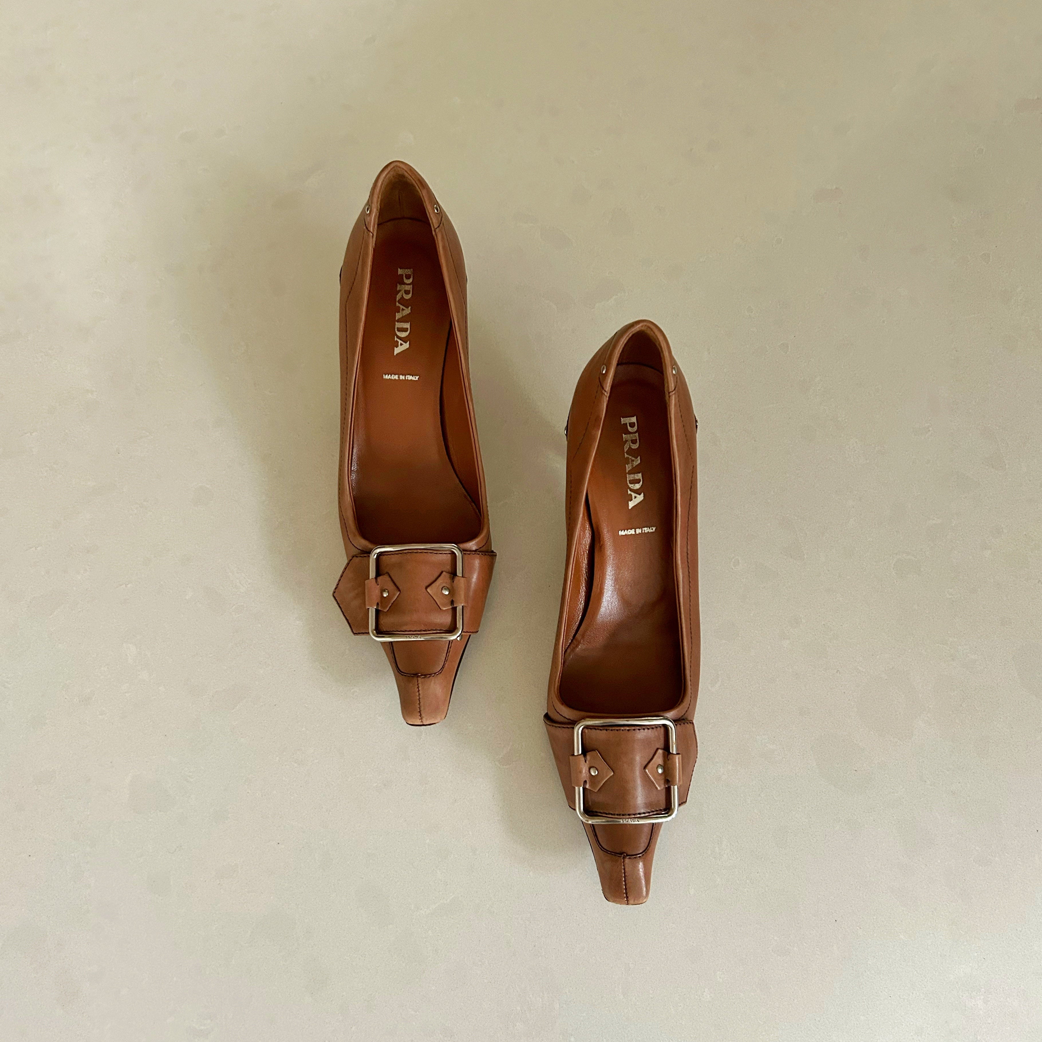 Prada - 00's Leather Buckle Kitten Heels