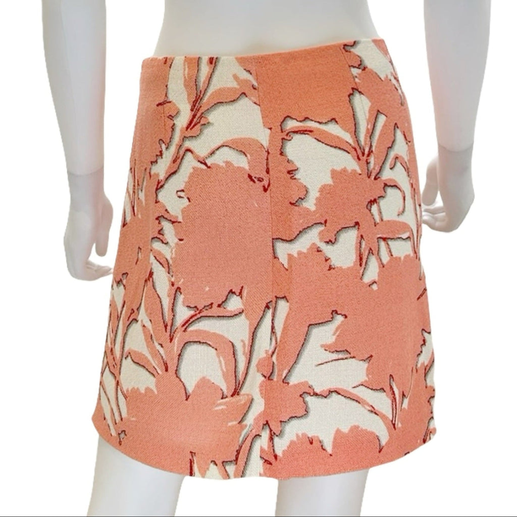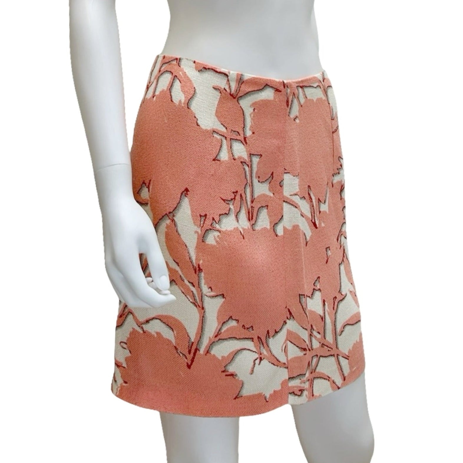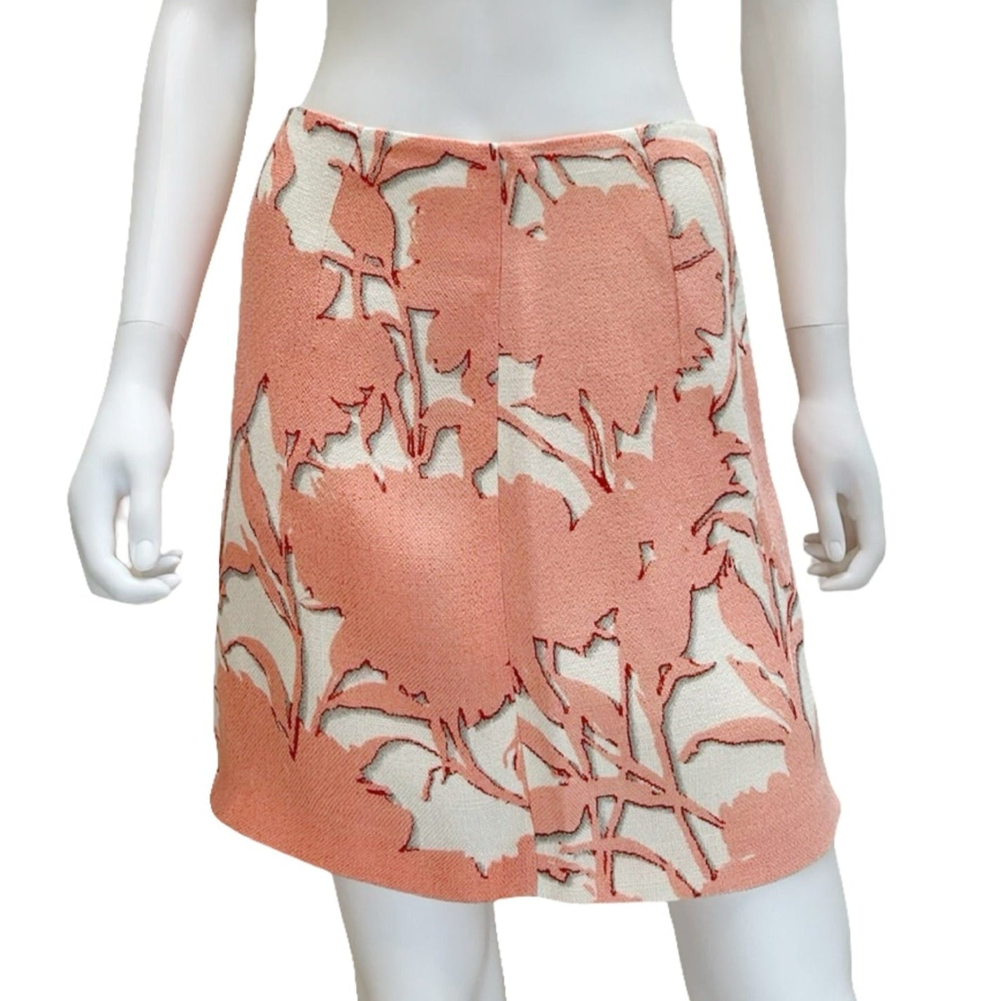 Description - Vintage pink/white Miu Miu mini skirt with zip and hook/eye closure at back.