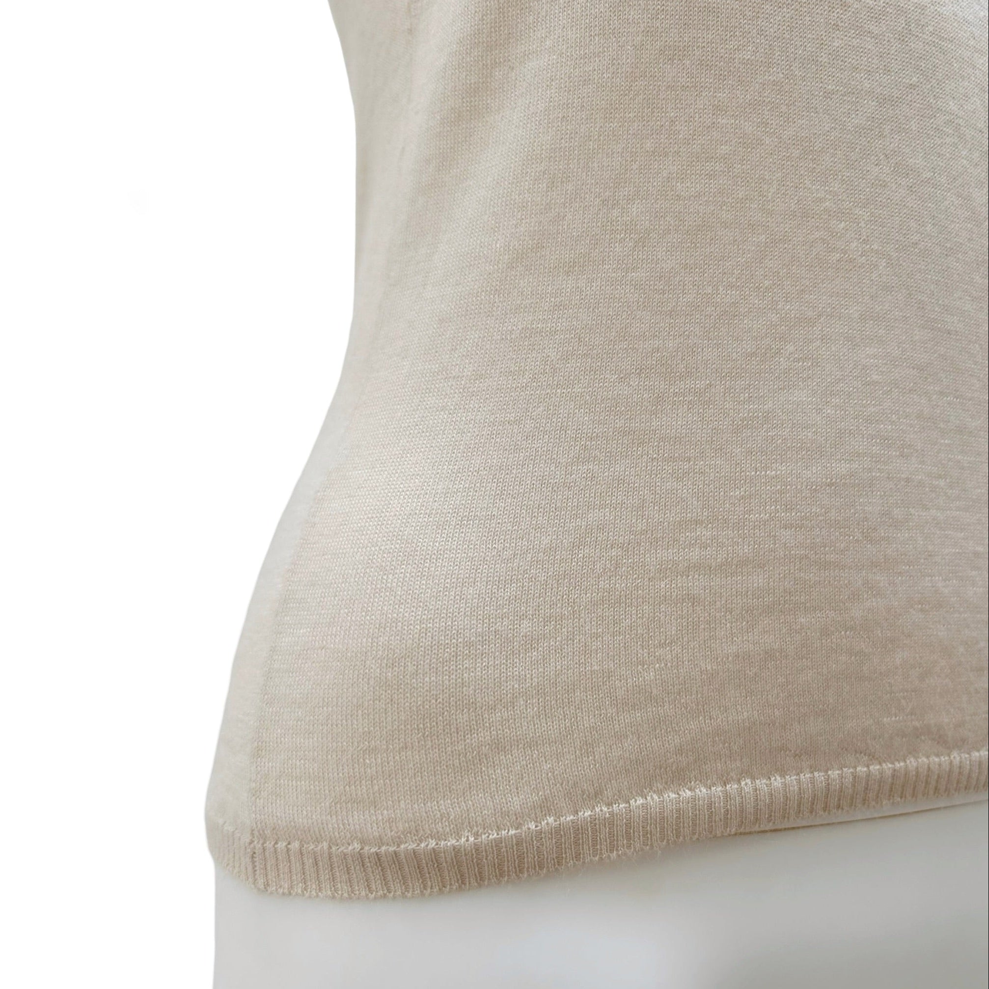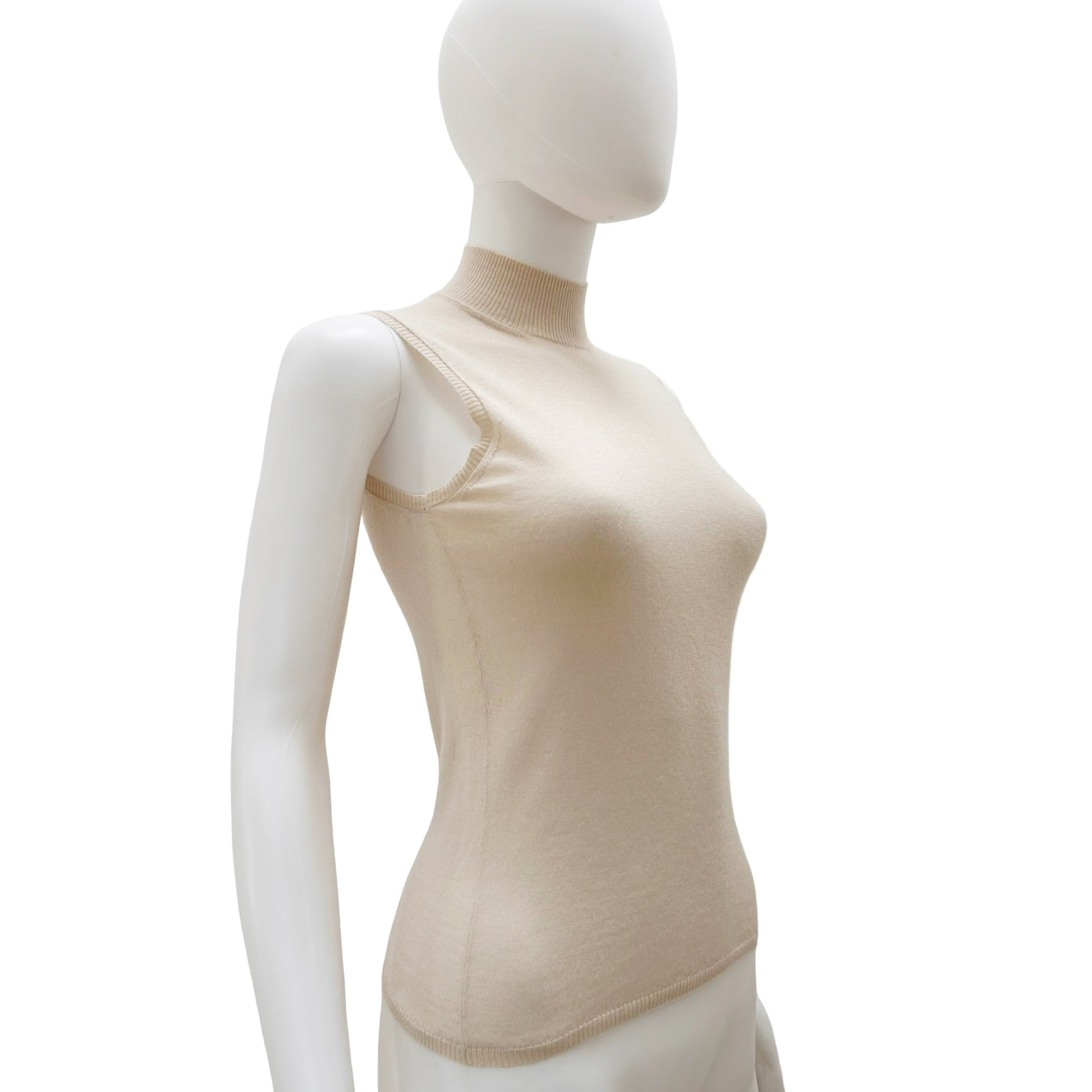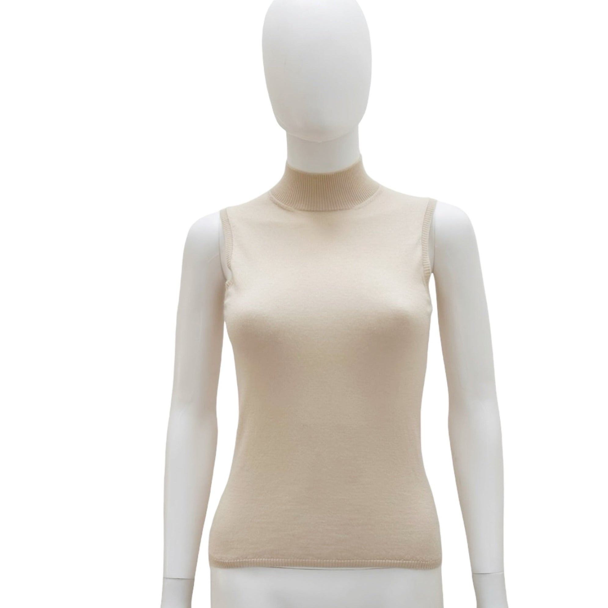 Description - Early 2000's neutral cashmere Prada sleeveless knit tank top with turtleneck.